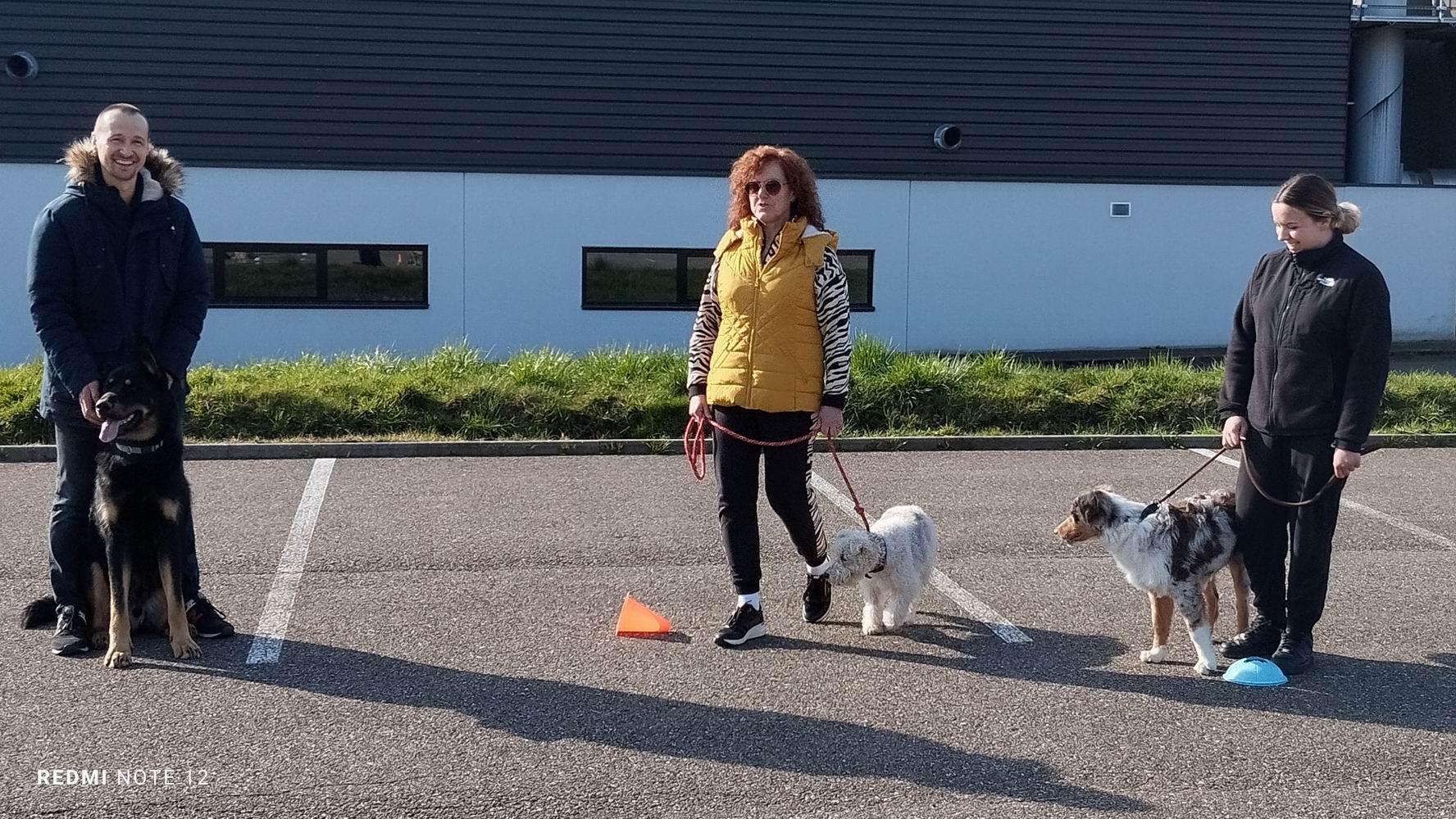Je propose des cours communs pour concrétiser ce que l’on a appris en cours individuel avec croisement de congénères à diverse endroit et différents thèmes d’exercices lors de ces cours.